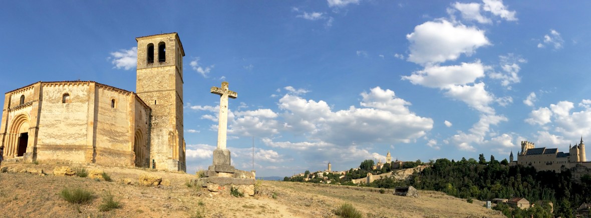 Post lunch we stopped by the river park, Alameda de Fuencisla, to capture the views of the Alcazar de Segovia. This less visited area of Segovia has the Convent of San Juan de la Cruz and the not to be missed, romanesque Church of Vera Cruz. This church has a very interesting dodectagonal plan, and in its center, it has a small two-level “edículo” or temple. You can read more about it on the link above. We were able to peak inside, moments before a wedding. My little nieces believed the “tale” that the bride was the princess who lived in the castle above.